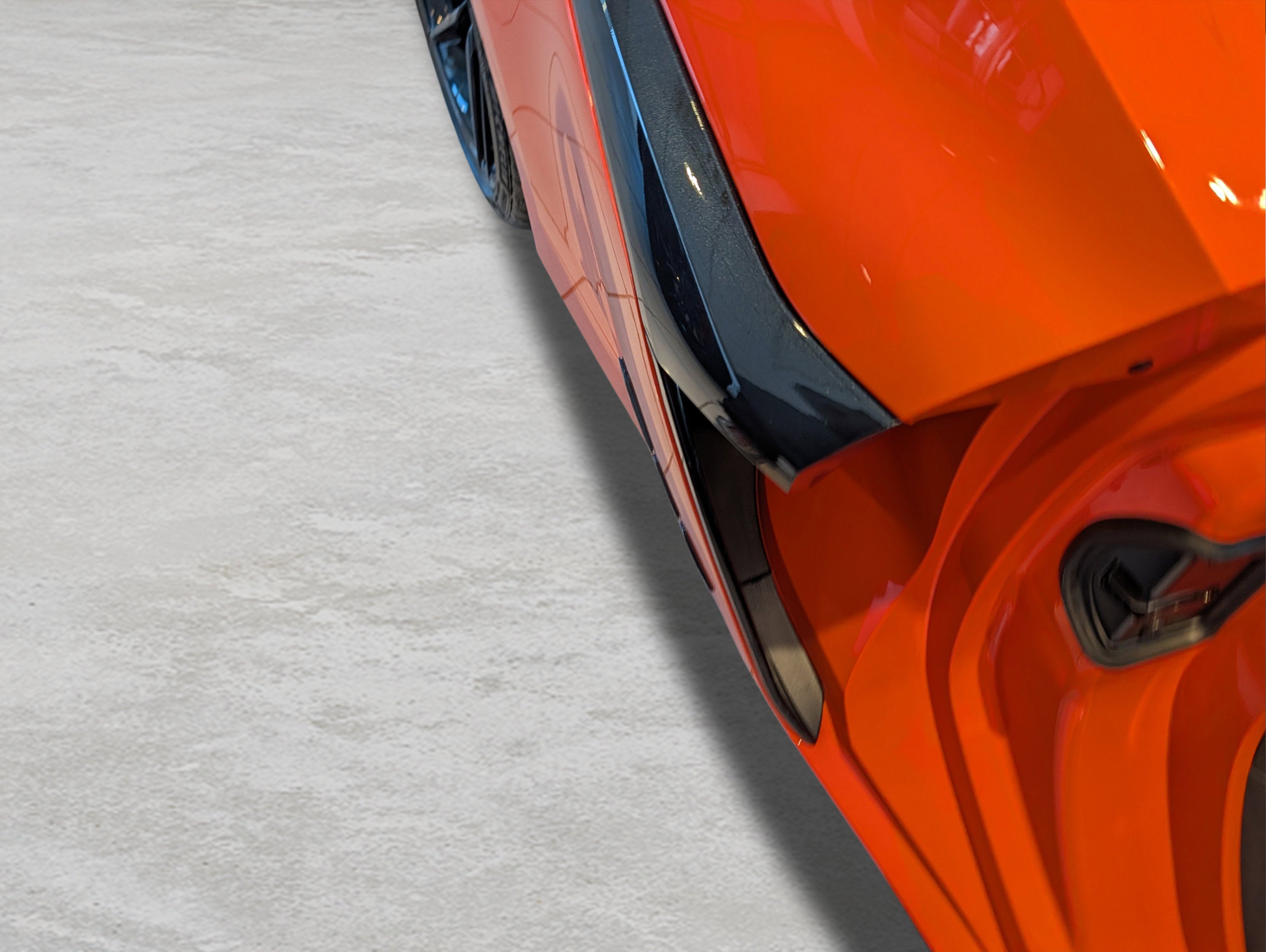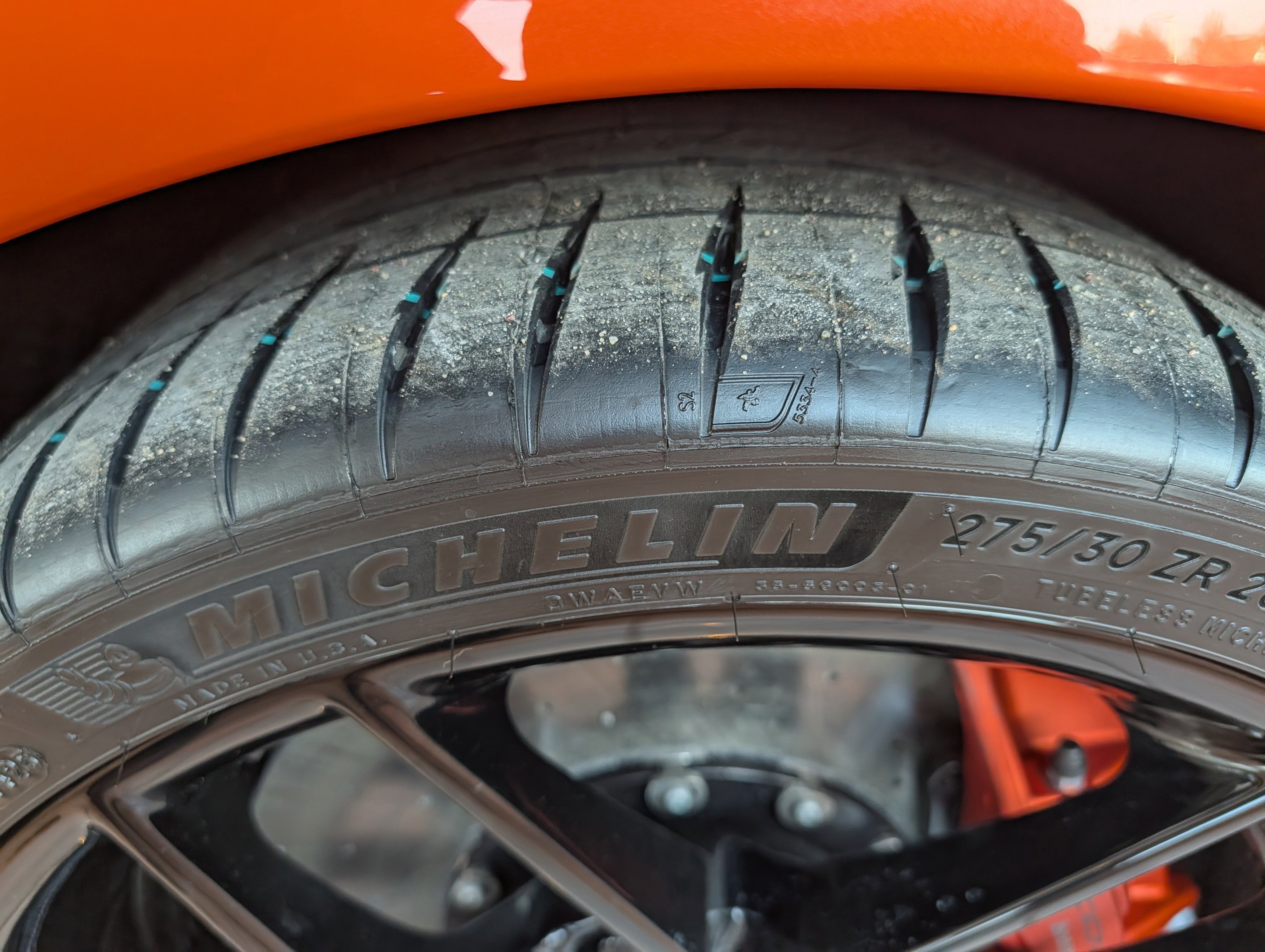 - Orange-painted brake calipers
