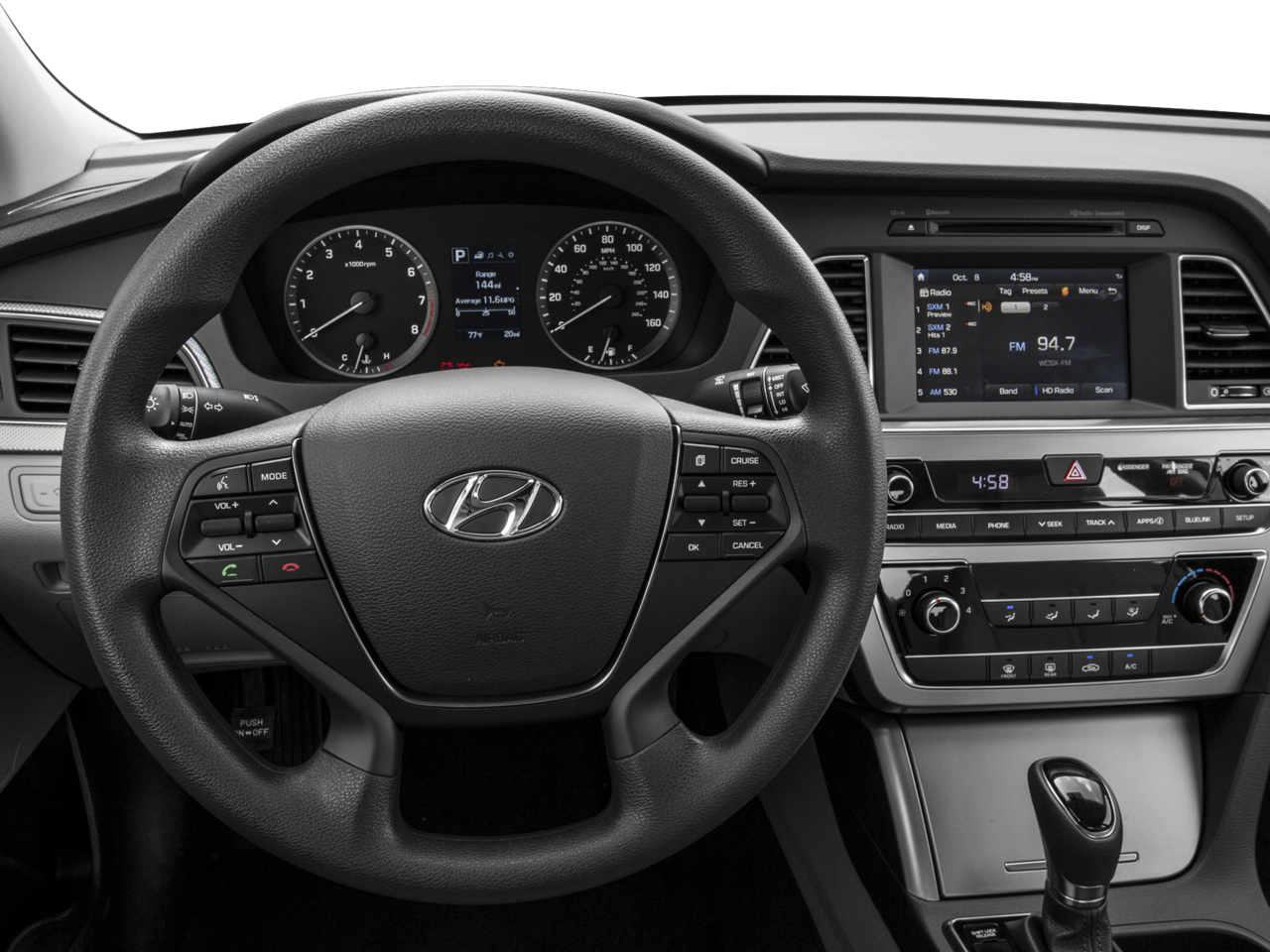 Step inside the well-appointed cabin and experience the comfort and convenience that the Sonata has to offer. The spacious interior, with its premium cloth seating surfaces, provides ample room for you and your passengers to relax and enjoy the journey. Thoughtful features like the tilt and telescoping steering wheel, along with the steering wheel-mounted audio controls, allow you to stay connected and in command.