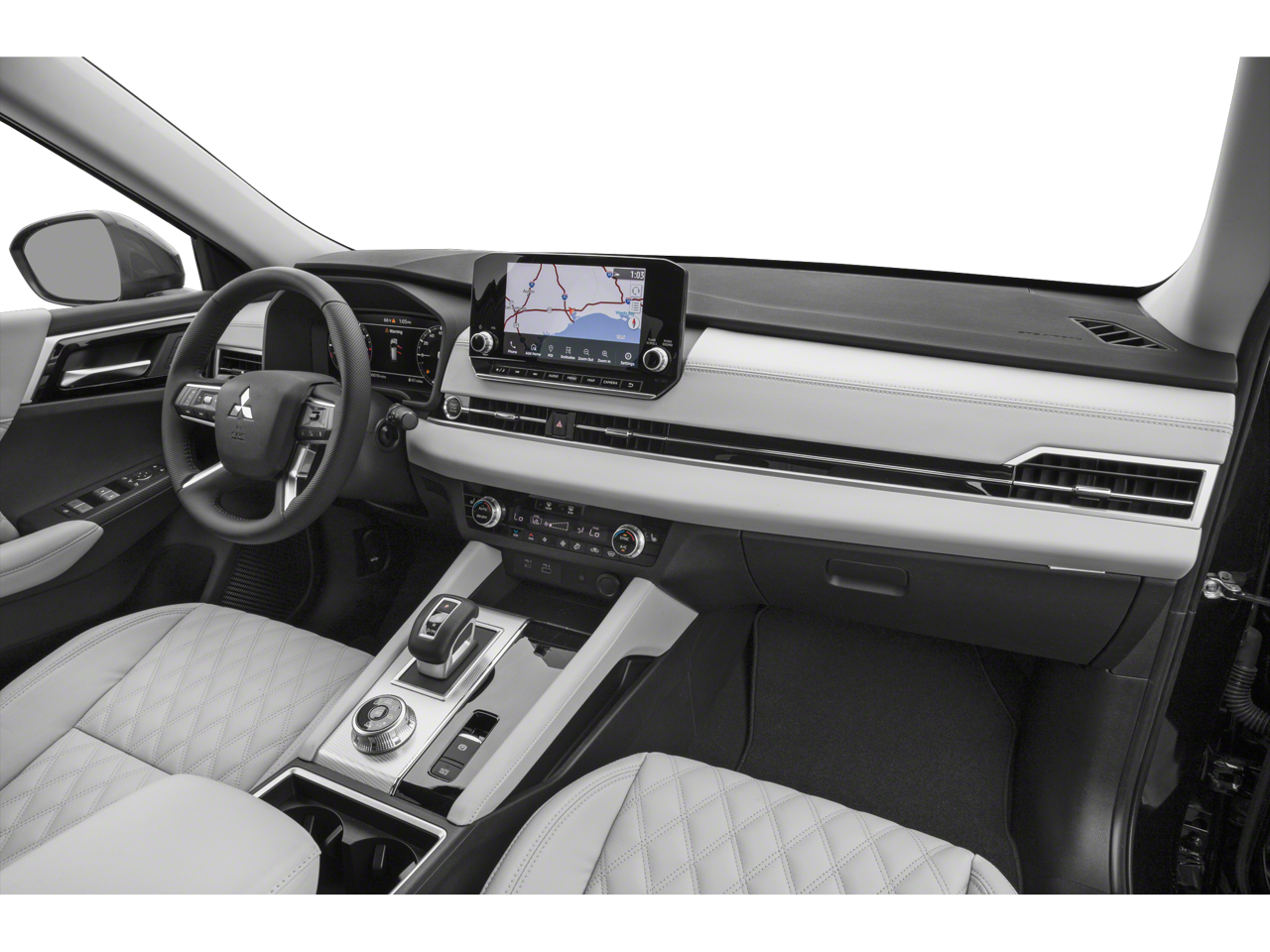 Stepping inside, you'll be greeted by a host of cutting-edge amenities, including a 9-inch navigation system with smartphone integration, dual-zone automatic climate control, and a premium audio system. The Outlander's spacious interior offers ample room for passengers and cargo, with a split-folding third-row seat for added versatility.