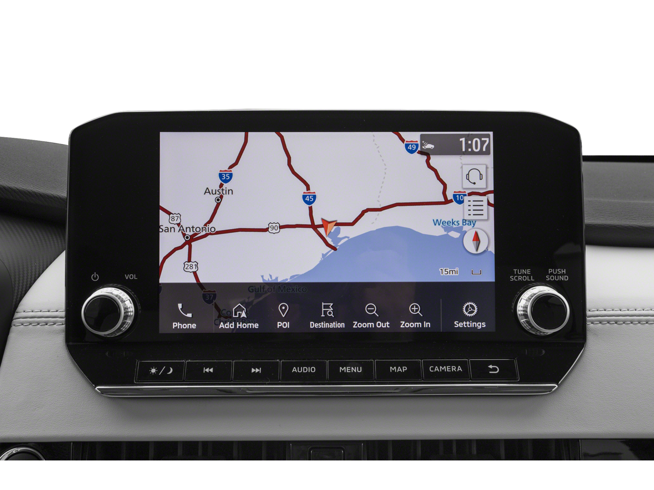 - Leather seating with heated front and second-row seats